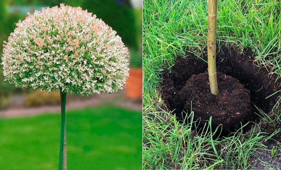 Выкапывают посадочную ямку размером 0.4х0.6 м. Расстояние между посадками около 2 м, параллельно ориентируются и на ландшафтный дизайн участка;